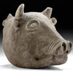 ריתון חרס (Terracotta) בצורת ראש פר. תקופת הברונזה (Bronze) התיכונה 2